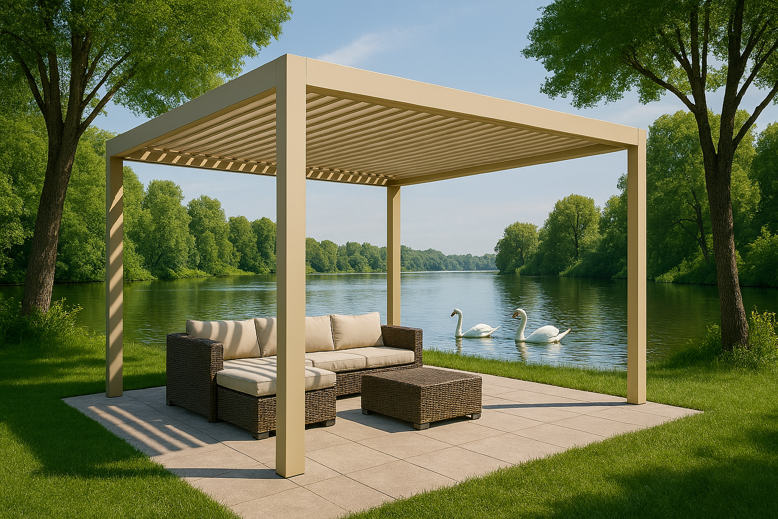 Letisztult, minimalista vonalvezetésének köszönhetően a bioklimatikus pergola bármilyen építészeti stílushoz illeszthető. Széles szín- és méretválasztékban érhető el, így harmonikusan illeszkedik a homlokzathoz és a kerthez. Növeli az ingatlan értékét, miközben elegáns, prémium érzetet ad az otthonának.