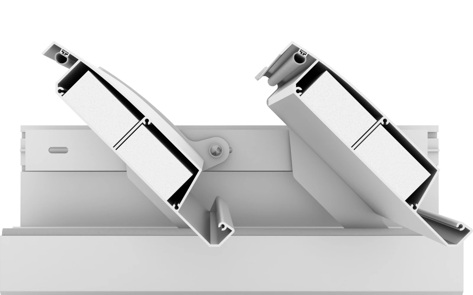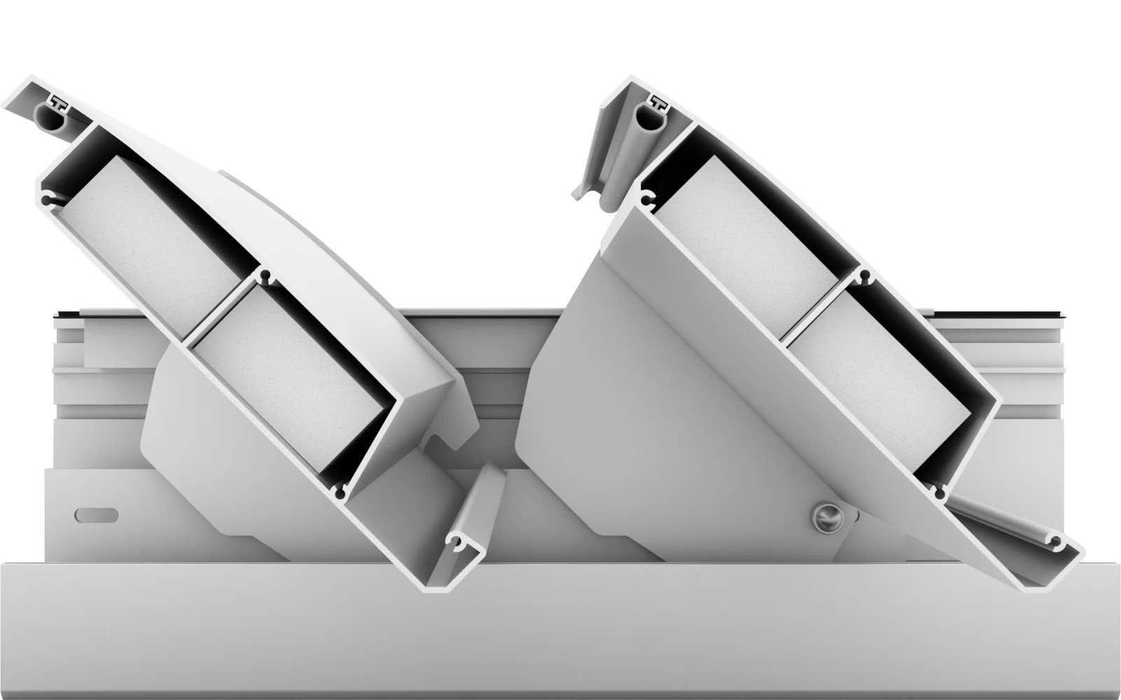 140° elforgatható sík lamella, ebből a típusból építhető a legerősebb tetőszerkezet. A lamellába épített szigetelőanyag csökkenti az eső kopogását, valamint a páralecsapódást.